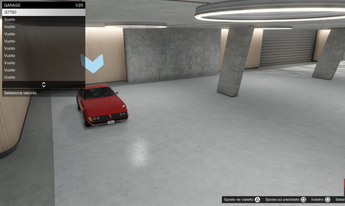 Scendi dal veicolo e vai sul pallino blu presente all’interno del garage (si tratta del punto di gestione dei veicoli).