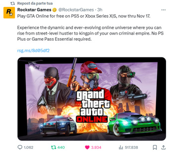 Rockstar Games ha annunciato che, dall’11 al 18 novembre 2025, sarà possibile giocare gratuitamente a GTA Online anche senza abbonamento a PlayStation Plus o Xbox Game Pass Core (ex Live Gold).