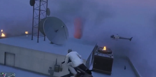 Un elicottero della polizia inizierà una sparatoria nei pressi dell’edificio.