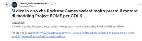 Non è ancora confermato ufficialmente: Rockstar non ha annunciato ROME, ma le voci si fanno sempre più insistenti.